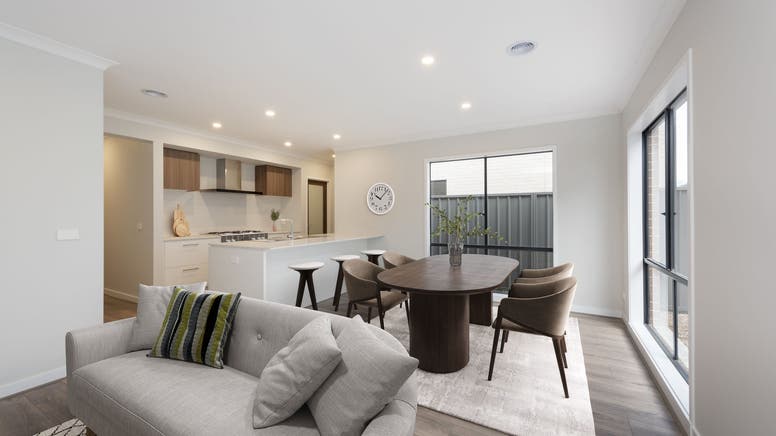 The open-plan kitchen, living, and dining area is complemented by a concealable butler’s pantry for streamlined storage. With three bedrooms, a powder room, and a north-facing backyard, this home is ideal for first-home buyers, downsizers, or investors. Plus, enjoy the convenience of being close to Mantis Circuit Playground and Barayip Primary School.