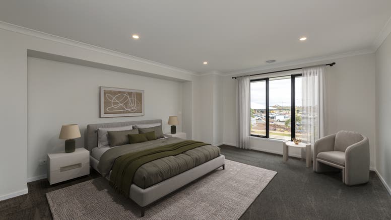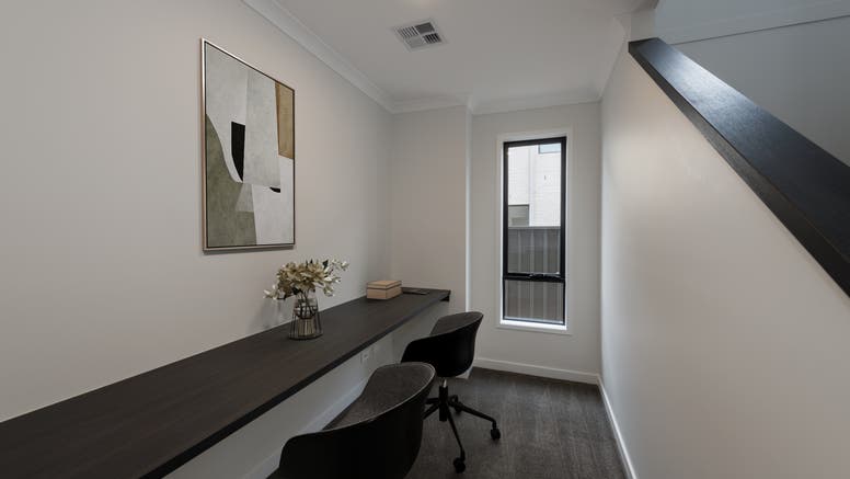 Designed with flexible living in mind, the ground floor features a wide entry way leading straight on to a theatre space – ideal for family movie nights or simply escaping the hustle of family life. A spacious study with built-in desk offers a dedicated work-from-home zone, while the generous open-plan kitchen, dining and living area flows seamlessly to the undercover alfresco, creating the perfect setting for entertaining year-round.