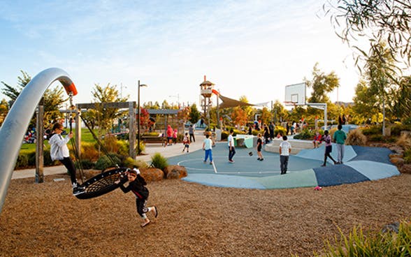 Unwind at Gibson Reserve which overlooks the stunning Kororoit Creek and neighbours the Jarai Rain Garden. The park was designed with inclusivity in mind, with accessible play areas, cubby houses, swing sets and balance beams. If you're looking for more of a thrill, Frontier Park might be the outdoor destination for you. Featuring a skate park, ropes course, basketball court and water play, it is Woodlea's world-class adventure park.