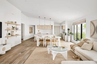 You may like to add a variety of shelves in the living area to the ceiling. Perfect for photographs or plants, shelving like this adds another layer of interest and pop into a room.