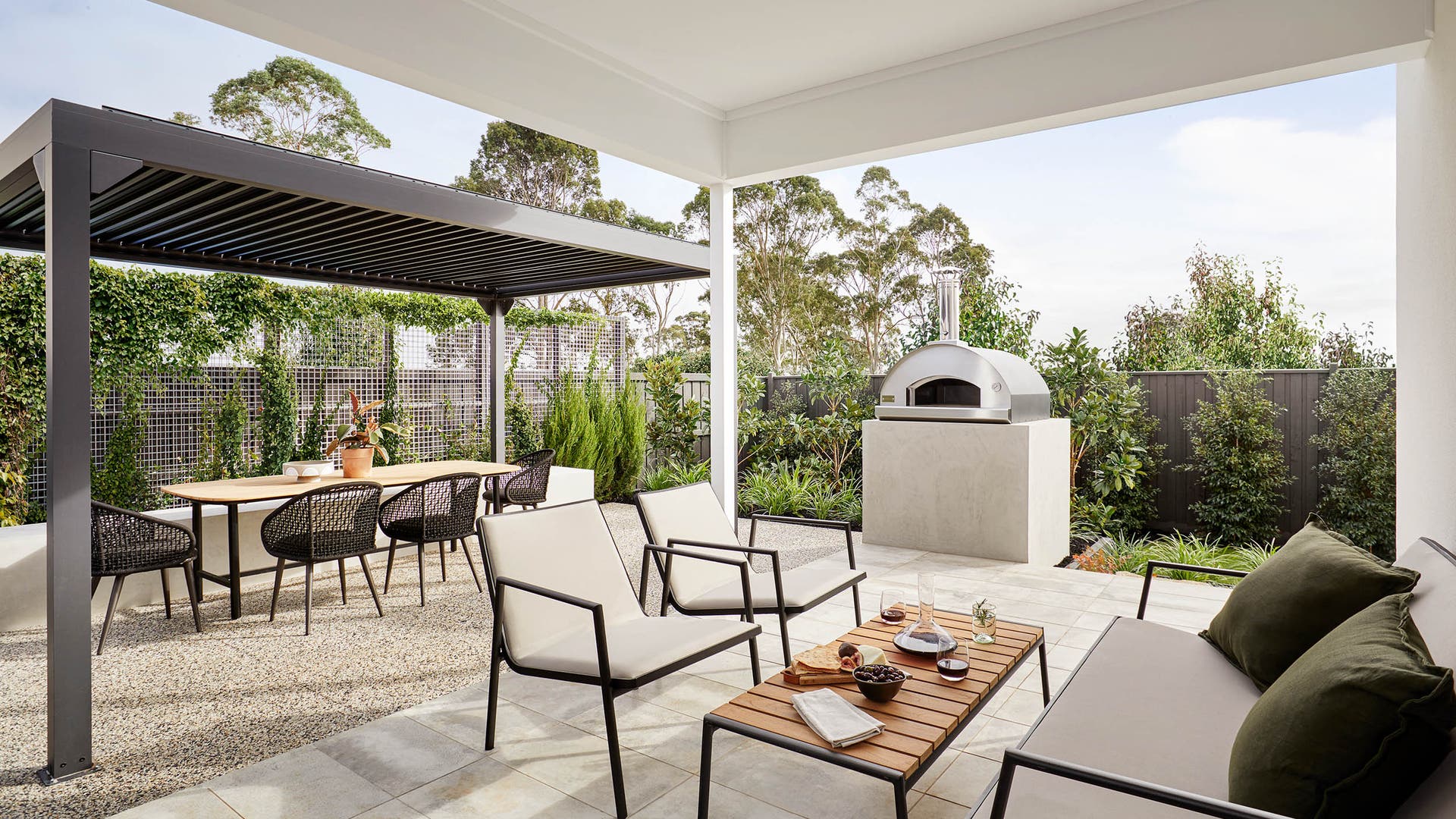 It’s becoming increasingly popular for outdoor zones to be designed as modern and stylish leisure spaces because they boost the livability and relaxed vibes of a home. So for your landscaping plan, consider incorporating features such as cosy outdoor heaters, a designer fireplace in the alfresco, and an integrated outdoor kitchen and pizza oven, which help make it easy to feed family and friends in the open air. Fire pits are also much-loved outdoor ‘wow’ features, which often work best on a paved area for ease of cleaning and practicality.