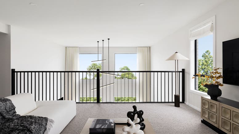 Upstairs, the master suite is a true retreat, featuring a large dressing area and ensuite, with optional balcony access for added elegance. Each bedroom is thoughtfully appointed with generous robes, and dual walk-in linen closets provide ample storage for the whole family. The upstairs leisure area, available with a void option, adds architectural interest and a sense of openness to the upper level.