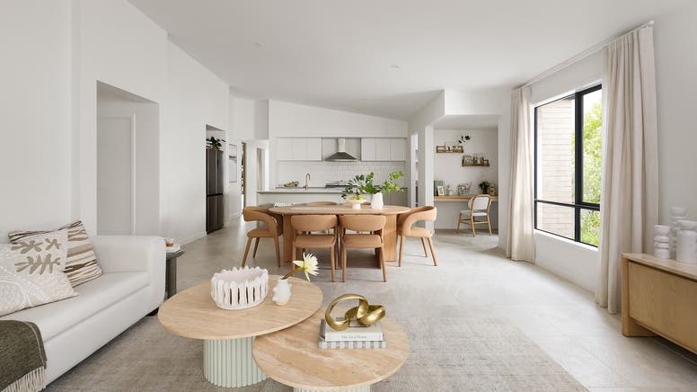 The Evoka 209-S22 is a cleverly designed single-storey home that maximises every inch, featuring four bedrooms, a walk-in pantry, and a study nook tucked off the kitchen. The open-plan living and dining area flows seamlessly to the alfresco, perfect for entertaining or relaxing.