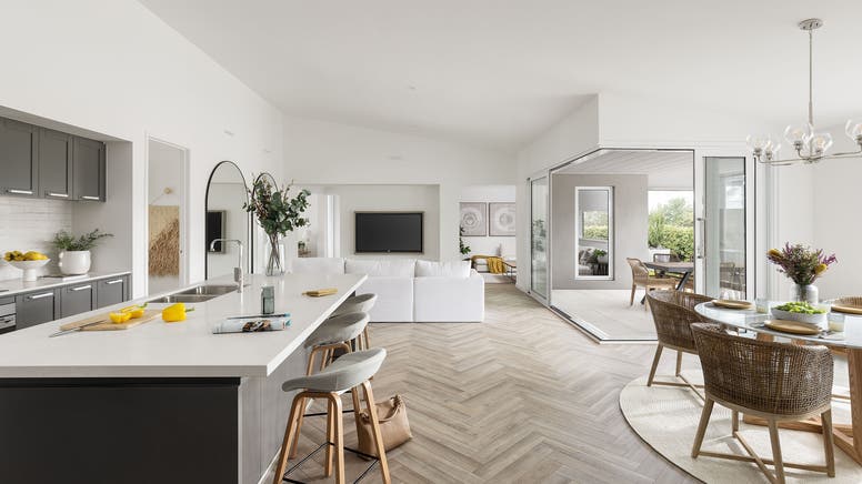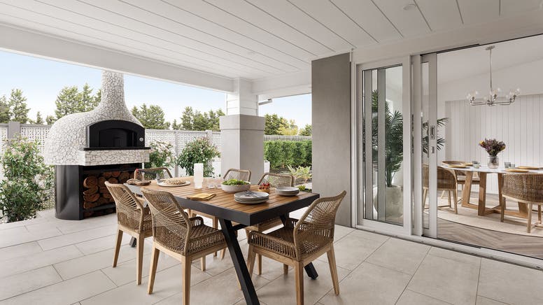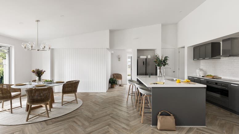 The Carmelle 287-S31 is a single-storey design that delivers exceptional space and sophistication for modern families. Its expansive open-plan kitchen, dining, and living zone flows effortlessly to a unique side alfresco, creating the perfect setting for entertaining or relaxed family time. A large walk-in butler’s pantry adds convenience, while the inclusion of both a theatre and leisure room ensures everyone has a place to unwind. With a total area of 286.6m² (30.85 squares), and offering four bedrooms, two bathrooms, a powder room, and a double garage, this home is the perfect blend of space, style, and thoughtful design.
