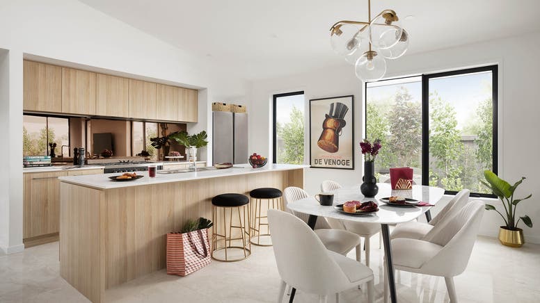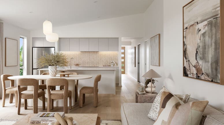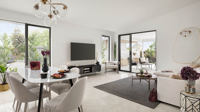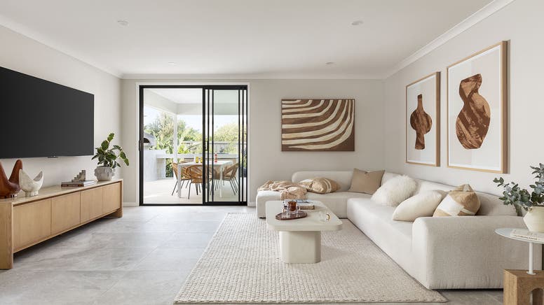 - Light-filled open-plan living and dining, extending to a morning-lit alfresco