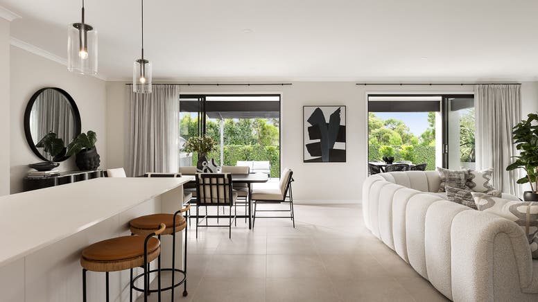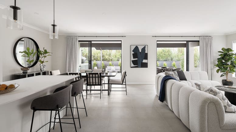 - Open-plan kitchen, living and dining with east-facing alfresco