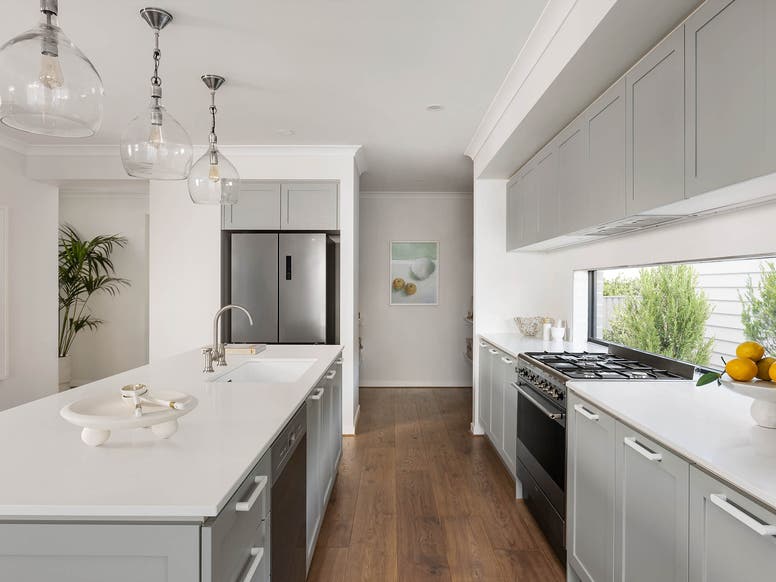 - Soft close cabinets throughout kitchen plus laminate overhead cabinets each side of the rangehood in your choice of over 100 colours