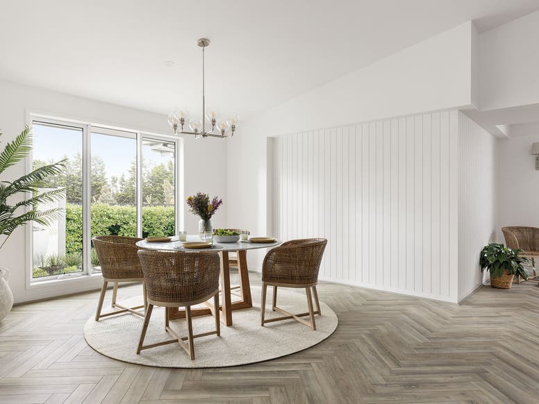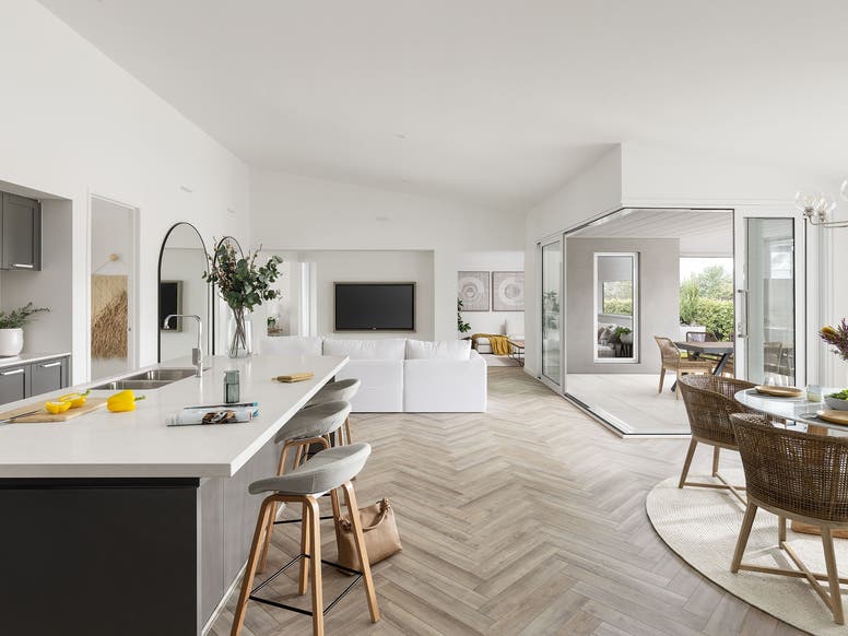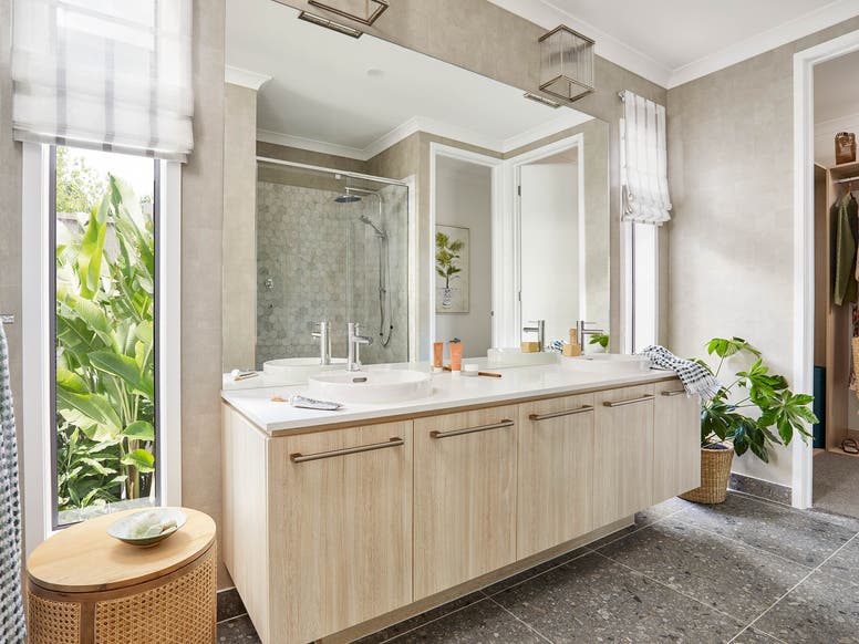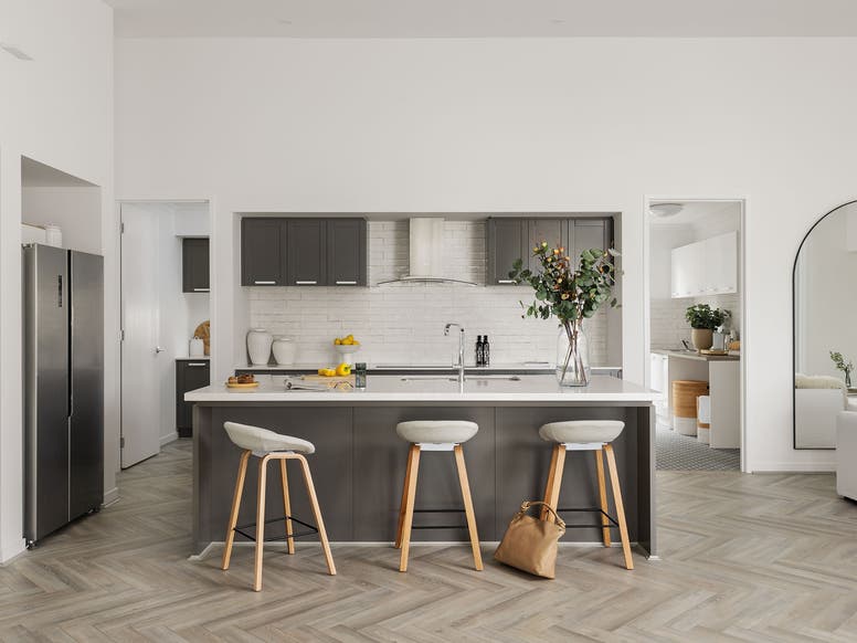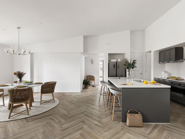 The single-storey Carmelle for 14m+ lot widths shines with its seamless open-plan design, where the living, dining, and a unique side alfresco area come together to create a perfect hub for family life. The master suite at the front of the home features two dressing rooms connected by the ensuite. Secondary bedrooms are located in their own wing at the rear of the home.