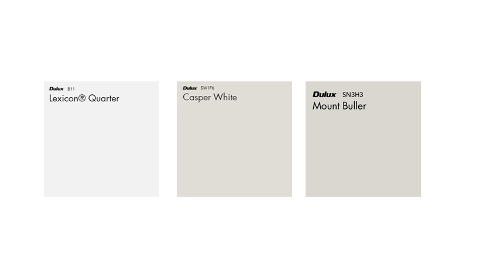 “In our design showroom, paint is typically chosen last to visualise the overall colour scheme and determine the need for a white paint with a warm, cool, or neutral undertone. And the results are in! The three standout white paints being chosen by our clients are Lexicon ¼, Casper White ½, and Mount Buller.”